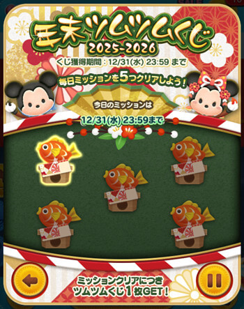 LINEディズニー ツムツム(Tsum Tsum)の2025年12月末イベント「年末ツムツムくじ2025~2026」の12月31日のミッション完全攻略まとめです。