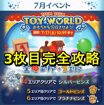 LINEディズニー ツムツム(Tsum Tsum)の2019年7月イベント「トイワールド/TOY WORLD~おもちゃを完成させよう~」の3枚目の完全攻略まとめです。