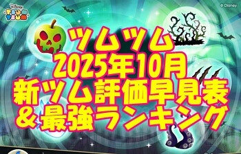 LINEディズニー ツムツム(Tsum Tsum)の2025年10月新ツム(新キャラ)の評価&強さランキングを早見表としてまとめました。