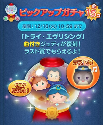LINEディズニー ツムツム(Tsum Tsum)の2025年12月ピックアップガチャの2回目は、ラスト賞に曲付きジュディ!
