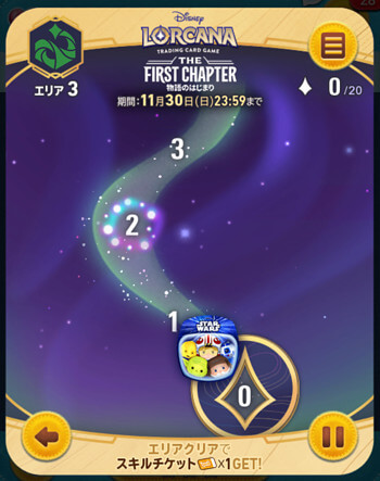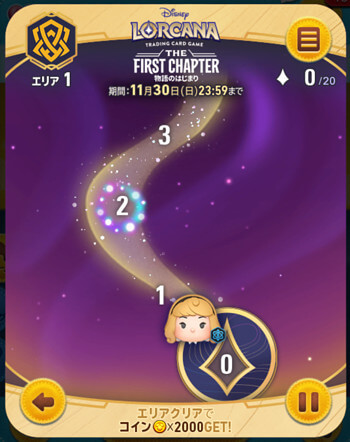LINEディズニー ツムツム(Tsum Tsum)の2025年11月ロルカナイベント~THE FIRST CHAPTER~の1枚目の完全攻略まとめです。
